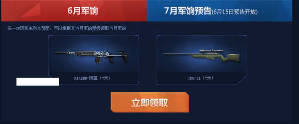 任一CF玩家来到本页面,可以根据其当月军饷星级领取当月军饷。