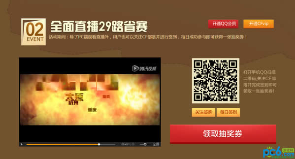 3.活动期间:除了PC端观看直播外,用户也可以关注CF部落并进行签到,每日成功参与即可获得一张抽奖券