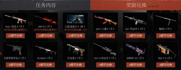 2、玩家在任务周期内每完成一个任务,即能获得该任务对应的奖励(赏金猎人银币、道具),每月最后一天的12:00,当月银币清零。