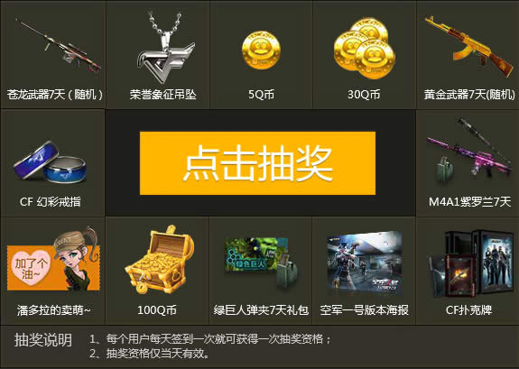 所有玩家 每周一至周日连续签到 或 整月连续签到 就能免费领取精美礼物哟! 二、抽奖