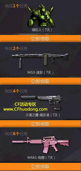 领取奖励不消耗任务数。也就是如果你完成了6个任务,可以把上面的奖励通通拿走。 CF2.0火线赏金令任务 完成一次间谍战 完成一局擂台模式 在爆破战中,一局游戏杀敌达到30个,并最终获得胜利 加入一场新的游戏后,3分钟内杀敌人数达到10人 在团队竞技或爆破战中,对局结束时,获得ACE称号 有的玩家问,CF赏金令活动怎么接任务呢?其实这个任务不用接,直接完成后就可领取奖励。 CF2.0火线赏金令活动网址 这次的网址是: 《穿越火线:枪战王者》最大化程度复刻了端游的枪械手感,为了确保玩家能有最好的操作手感,端游开发团队原班人马针对操作进行了上万次测试,终于让玩家在手游上也能体验到不亚于端游的爽快、真实的枪战乐趣,以及用技术说话的公平竞技。 | 推荐资讯 总人气榜最新教程 本月人气