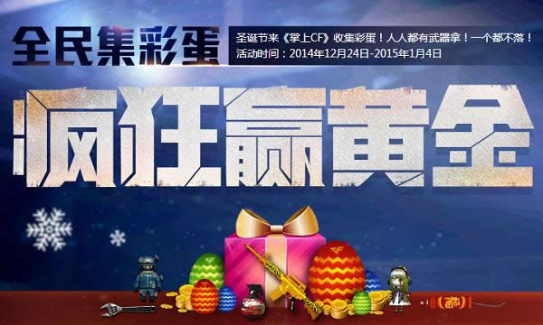 2014年12月28、29、30日每晚8点,准点开启“5彩蛋秒杀黄金枪”活动!黄金武器有限,先到先得,机会不容错过!