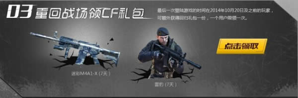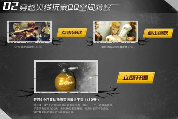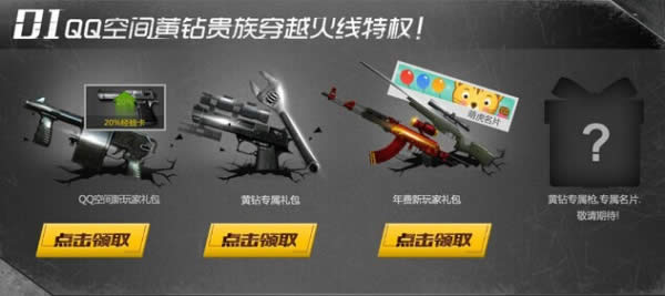 | 《穿越火线:枪战王者》是一款由韩国Smilegate及腾讯游戏三年打造的CF正版第一人称射击手游,作为一款国民级竞技手游,游戏完美传承了PC端的品质和玩法,同时还针对手机端的操作特点,将3亿鼠标的枪战梦想延续到手机上,玩家能够随时随地体验射击的乐趣和竞技对抗的热血。 cf黄钻领礼包领取, 黄钻专属礼包,礼包内容是特别的丰富, cf黄钻领礼包领取2014就这这里,一起看看活动内容吧