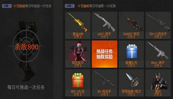 每日挑战任务,可以获得一次抽奖机会,100%中奖。