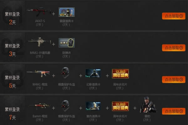 累积登录7天可以领Barret翔龙+烟雾头盔+复仇道具卡,