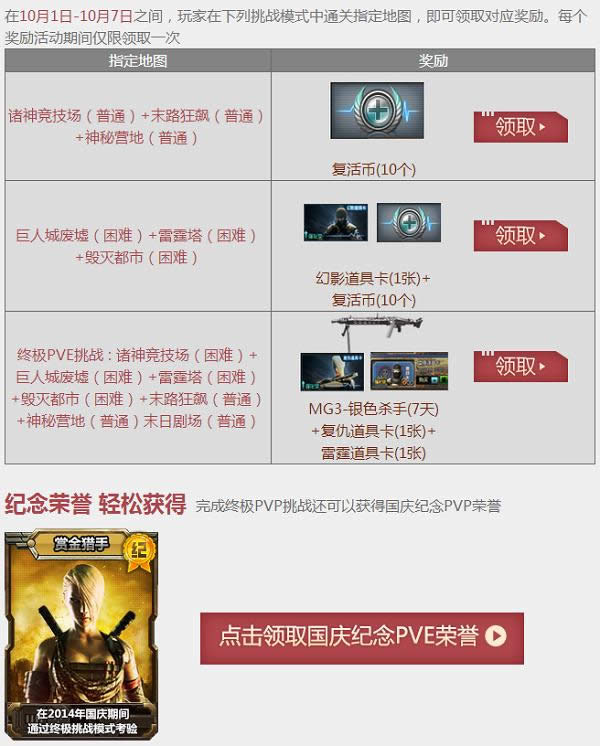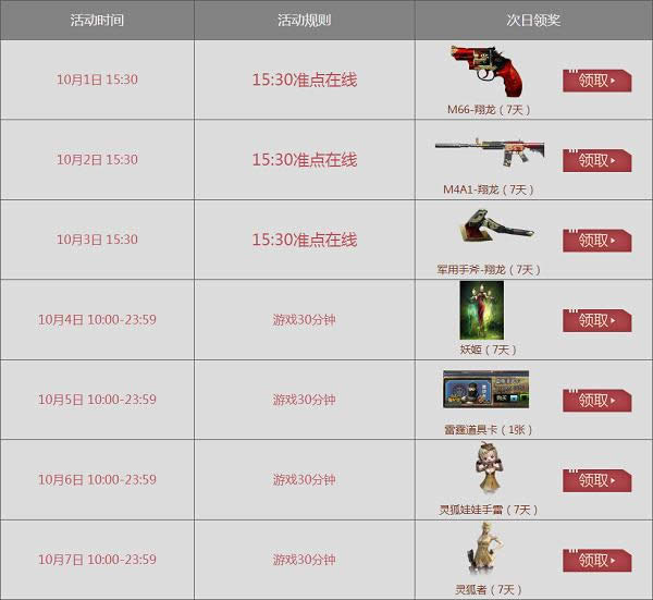 10月1日-10月7日,玩家在指定时间段内完成规定事项。次日即可领取对应奖励