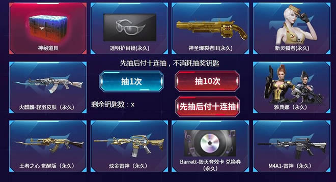 如对抽奖结果满意,则可以使用10个钥匙进行购买。