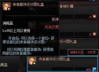 购买[贪食首饰/特殊装备礼盒]所需的材料[安徒恩灵魂碎片]变更后为6个