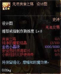 [贪食]系列装备升级[无尽贪食]系列装备所需的[纯净的魔能结晶]变更后为100,[金色小晶块]变更后为1000。