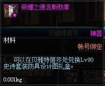 └ 荣耀之德洛斯勋章:可以在贝雅特丽齐处兑换Lv90史诗套装防具设计图礼盒