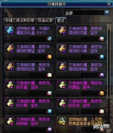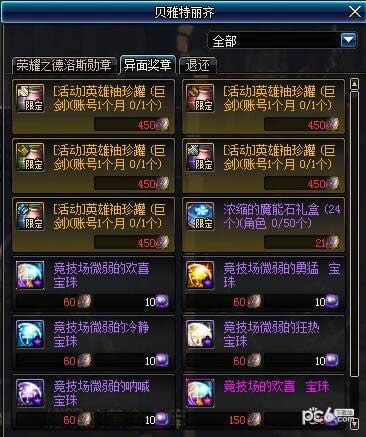 * 在帝国竞技场的贝雅特丽齐商店可以用奖励道具购买下面的道具