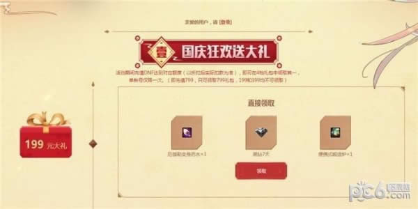 3.国庆期间,10月1号-10月7号,每日登录游戏后即可领取当天的签到礼包,签满7天,就可以参与专属道具的抽奖哦。备注:领取前请重新再登录一次游戏。