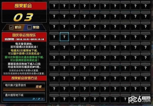 活动期间,Lv17及以上的角色通关2次推荐地下城可获得1次刮奖机会,通关10次和20次时可获得2次刮奖机会,每日最多获得12次。
