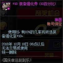为各位带来dnf国庆幸运刮刮乐活动介绍2018,参与到这次活动的玩家朋友们可以获得各种福利道具和强化卷等奖励,下面我们就来了解一下dnf国庆幸运刮刮乐奖励详情吧。