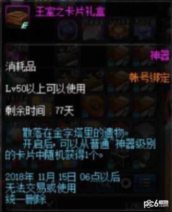 必定获得6个试练凭证,有几率获得被诅咒的85SS防具、王室之卡片礼盒、巴斯泰托的气息、深渊派对邀请函。