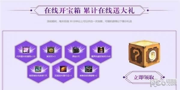 活动期间,每天在线30分钟以上可以开启一次宝箱,可随机获得以下展示礼品,连续抽奖6天可以开启终极宝箱