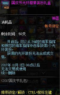 今年国庆礼包内赠送的光环是【漫沙众神】系列,属性如下: