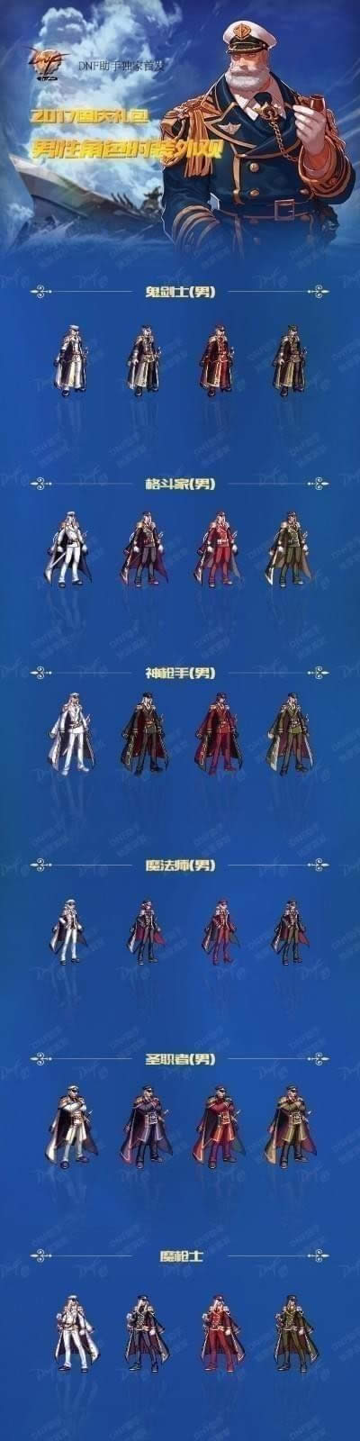 dnf国庆套2017礼包,国庆套时装如下,整体奖励来说还是非常不错的。对于小号提升非常的大。