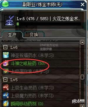 到达炼金6级后,我们只制作斗神之吼药剂。材料是勇士之吼药剂和无色小晶块。大概点击生产80个勇士之吼,就能升到7级炼金等级了。
