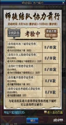 1.活动开始时,所有角色默认为徒弟状态,勇士们需要进行师父资格考验获得师傅身份。