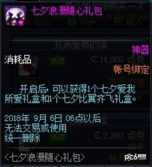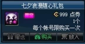 2.每个账号只能用点券购买1次“七夕浪漫随心礼包”,无法赠送或放入购物车;