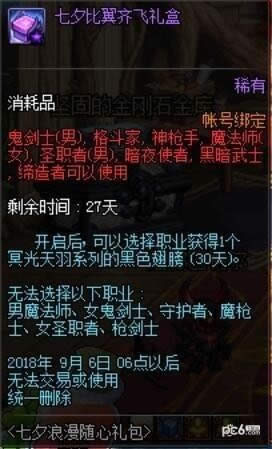 七夕浪漫随心礼包礼盒可以开出冥光天羽翅膀。