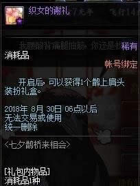 织女的谢礼开启后,可以获得1个鹊上肩头装扮礼盒。