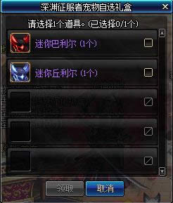 使用深渊征服者宠物自选礼盒, 可在 2种 深渊征服者宠物中选择一种