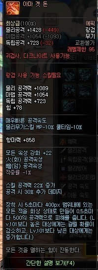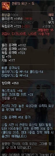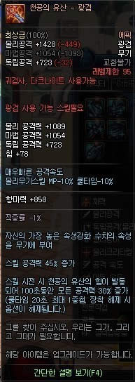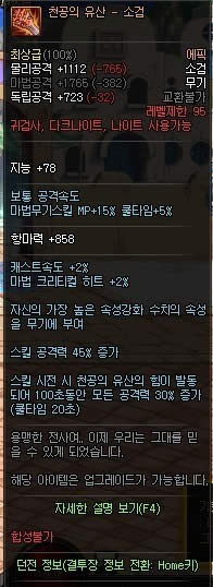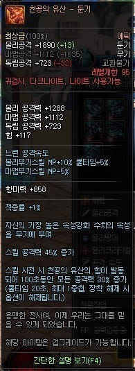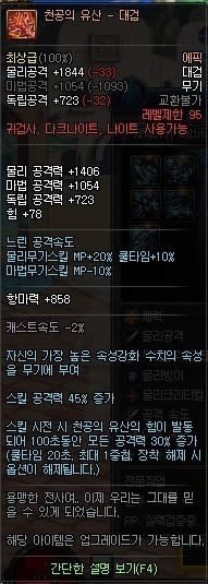 [装备属性操作键]输入时,获得天空的遗产的buff,使自己在100秒内 +最终伤害30%(冷却时间20秒,最大叠加1次,装备解除时效果消失)