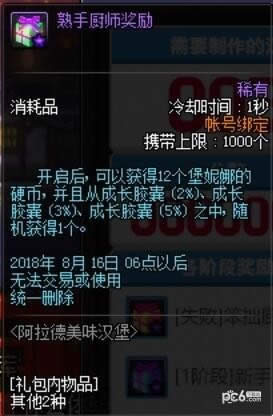 开启后,可以获得12个堡妮娜的硬币,并且从成长胶囊 (2%)、成长胶囊 (3%)、