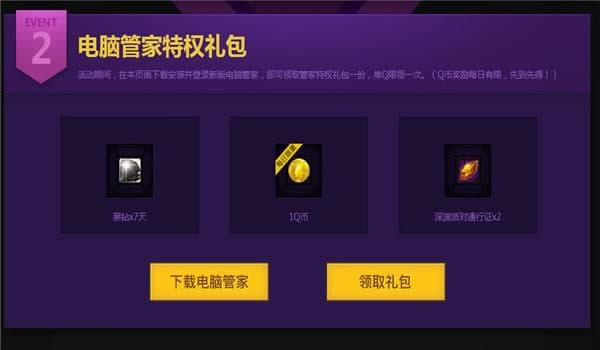 3.活动期间,在本页面下载安装并登录新版电脑管家,即可领取管家特权礼包一份,单Q限领一次。(Q币奖励每日有限,先到先得!)