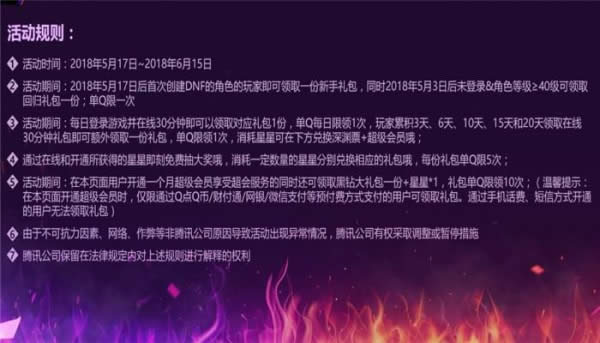 活动期间,2018年5月17日以后未登录40级以上的玩家可以在本活动页领取回归礼包一份,单Q限领1次