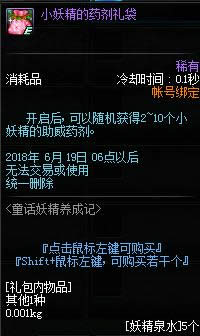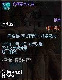 活动期间,每个账号首次登录的角色可以获得1个【妖精泉水礼盒】。