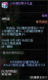 活动期间,每个账号在线每隔10分钟可以获得1个【妖精泉水礼盒】,每天至多获得18个【妖精泉水礼盒】。