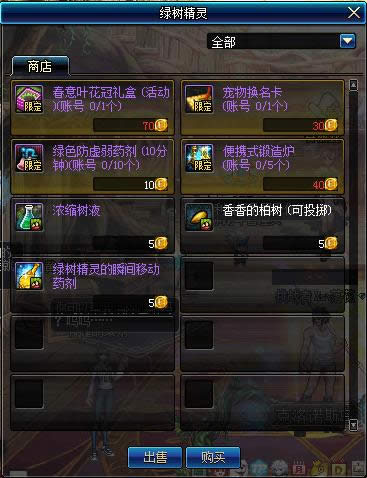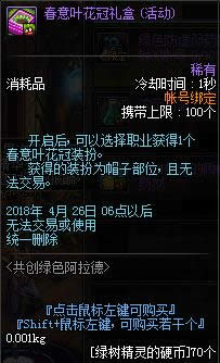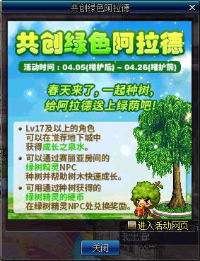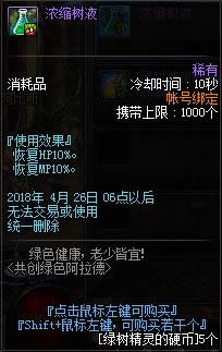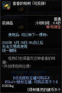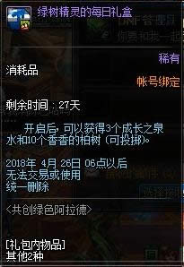 如图,17级及以上角色在刷推荐地下城时会掉落活动材料“成长之泉水”,其中每天上线系统会送一个“绿树精灵的每日礼盒”,包含3个成长之泉水和10个香香的柏树(地下城内投掷可短暂聚怪)。
