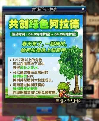 2.活动期间,Lv17及以上用户在推荐地下城中有几率获得【成长之泉水】在赛丽亚房间内的NPC绿树精灵处,可以进行种树