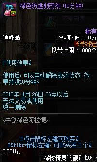 | 使用后,可以自动解除虚弱状态,效果持续 10分钟。