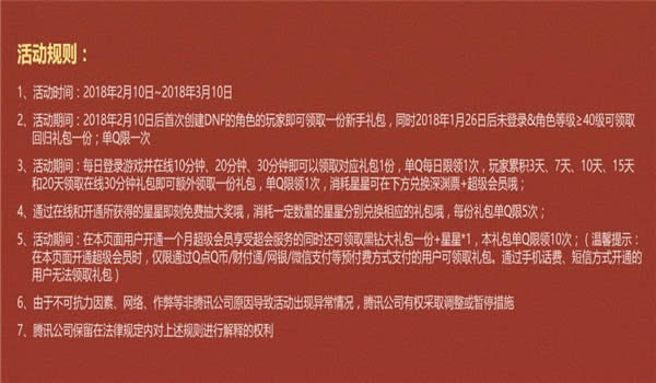 dnf春节的福利礼包领取地址2018,参与获取深渊票和黑钻。