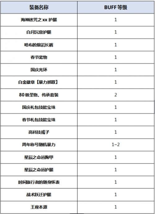 示例:穿戴特殊武器及异界6件套的情况下堆满等级,再根据财力(宝珠、白金、3S宠物等)将等级装备替换为绿气息散件。)当前版本BUFF不随动,可以换装。在技能等级堆够的基础上,再穿戴可以额外增加BUFF量的装备