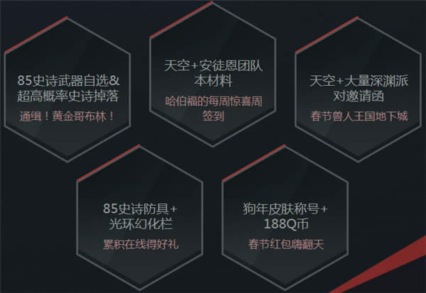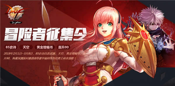 2018年2月1日~3月8日,85史诗自选武器、天空、黄金增幅书、直升90、海量深渊派对邀请函等豪华福利等各位勇士前来领取