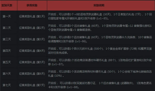 活动期间,勇士们点击HUD小图标打开活动界面可以每日签到领取礼包。签到后会以邮件的形式发送至勇士们的邮箱,邮件的期限为15天。勇士们帐号下任意角色均可参与签到。