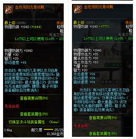 1.练级刷图,推荐血色套,拥有非常不俗的三攻以及附加伤害。