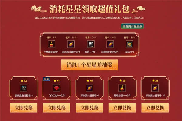 2.参与活动领取星星大礼可以兑换会员和深渊票。