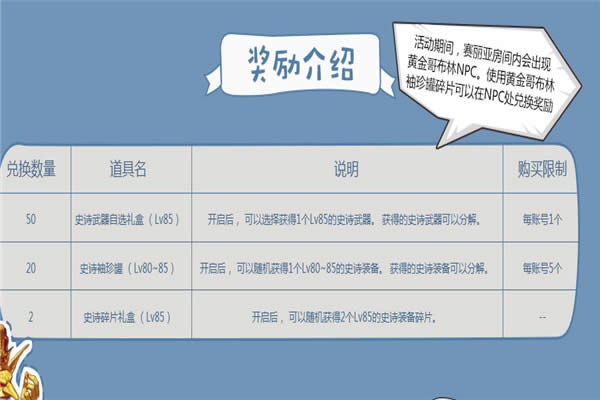 3.活动期间,赛利亚房间内会出现黄金哥布林NPC,使用袖珍罐可以兑换奖励道具。