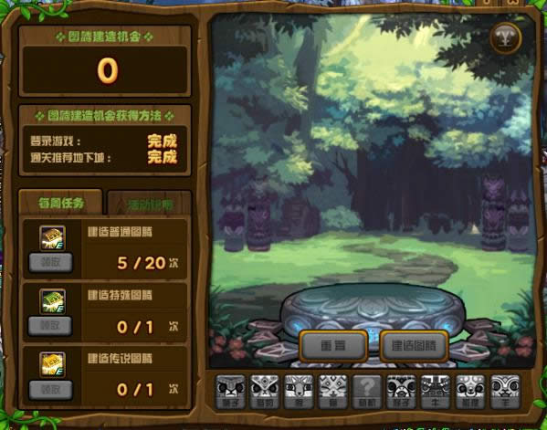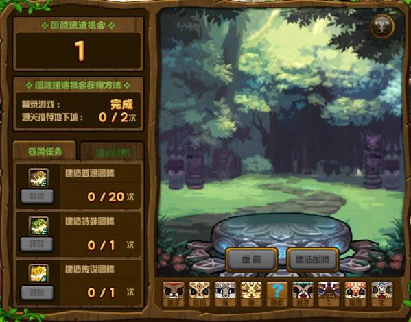那么从这9个选项中任意选择4种之后,便可以点击“建造图腾”按钮进行活动啦~如果想更换组合,可以点击“重置按钮”重新选择~