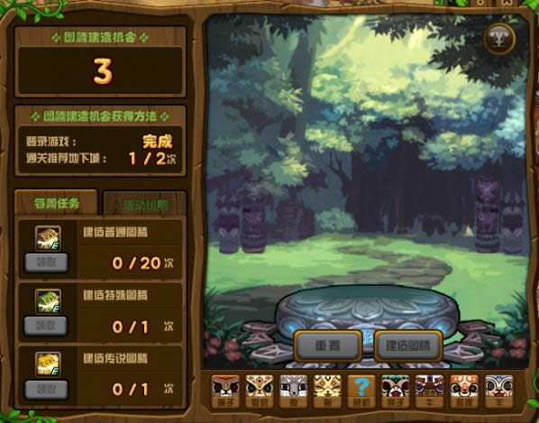 打开活动界面,我们可以看到左上角显示的是“图腾建造机会”,也即是活动次数~