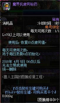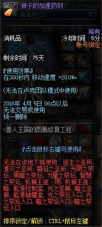 注意:在每次参与活动后,邮箱会获得各类药剂,类型与最后放置的图腾有关~如最后放置的为狮子图腾,则会收到“狮子的力量药剂”一个~不同动物药剂名称和属性皆不相同,药剂属性很不错,但无法在卢克团队模式中使用!建议有需求的小伙伴注意一下~
