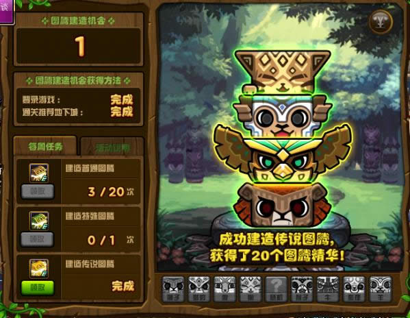 但是为什么说难也难呢?因为要获得特殊图腾,必须用指定的特殊组合建造图腾!因此如果RP不好的话要花的时间就比较长啦~毕竟一天只有5次活动次数。。。