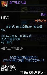 为各位带来dnf兽人王国守卫战活动地址,参与到这次春节dnf兽人王国守卫战活动的玩家朋友们将可以领取到各种丰富的礼包和道具,下面我们就来看一看dnf兽人王国守卫战奖励详情介绍吧。