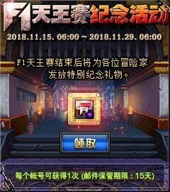 dnf纪念F1天王赛活动奖励介绍: